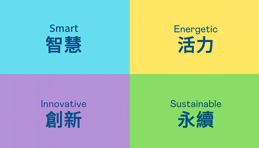 从稳重、信赖的OG视讯蓝开创新色彩,注入象征智慧蓝、活力黄、创新紫、永续绿的品牌色及动态多变的几何图形,呼应不设限的「Possibilities」精神,代表多元的专业技术及领域,在碰撞中相互触动、融合、延伸,持续激荡出更多新的可能性。
